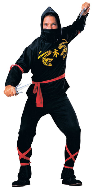 Hooded shirt, trousers, waist sash, arm and leg ties and face mask