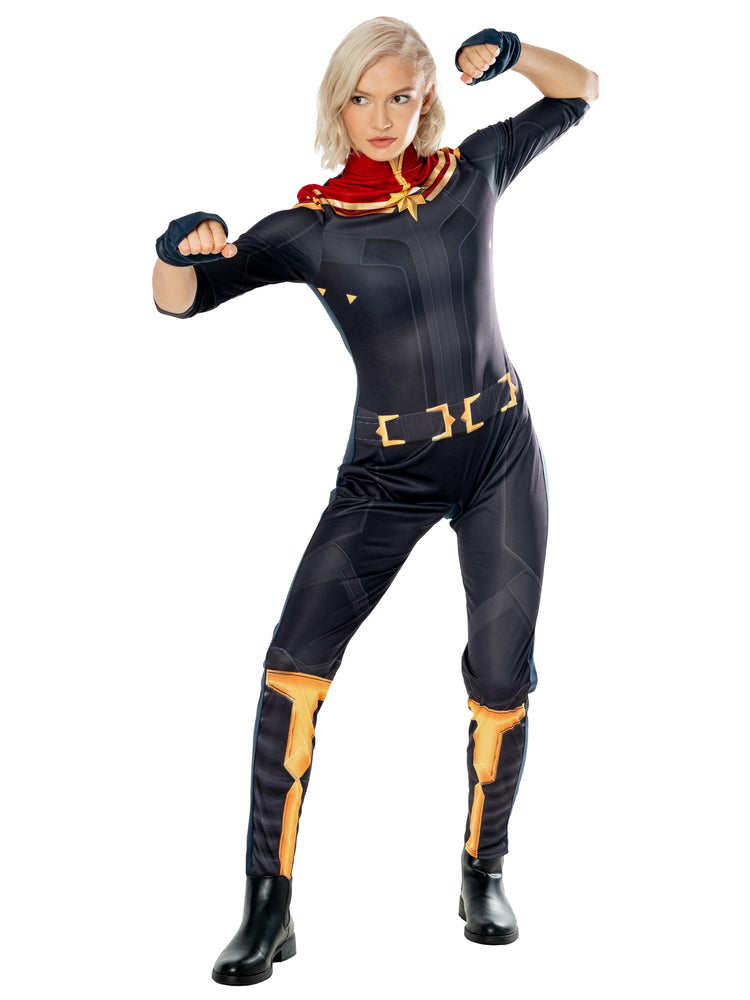 Save the universe in style with this Captain Marvel All-in-One Digital Printed Jersey Costume. This costume comes complete with gauntlets/gloves, allowing you to fully embody the iconic character from The Marvels film. Made from high-quality materials, this Captain Marvel Costume is comfortable and easy to wear, allowing you to focus on saving the world instead of your outfit.