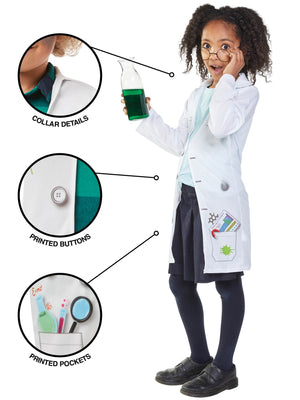 Not all scientists are mad, but it helps if you are! Slip into this fine lab coat and start on your next experiment. The coat comes printed with pocketful of pens, a magnifying glass and even a periodic table. The stains may well be real!