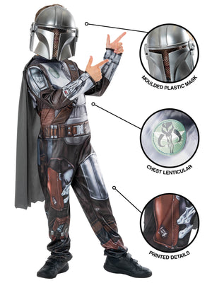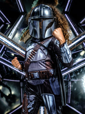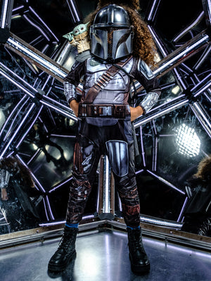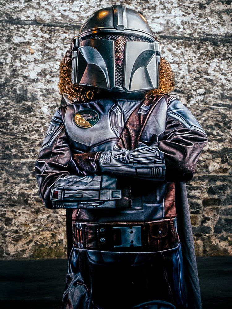 Suit up as Din Djarin, the Mandalorian bounty hunter, title character in the Disney Plus Star Wars live action series, and played by Pedro Pascal. Costume includes graphic printed jumpsuit with padded armour, cape and the unmistakeable Mandalorian mask. Officially licensed Star Wars product, developed in the USA.