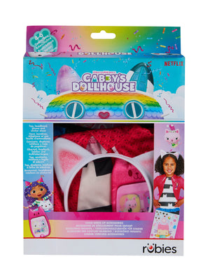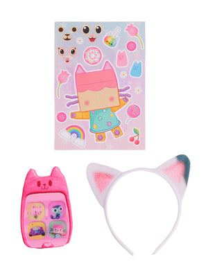 Step into Gabby's colorful world with this purr-fect Gabby's Dollhouse Box Set! Transform into the beloved character and bring the magic of the hit show to life. With fun accessories and interactive elements including a sticker sheet and meow-zing lenticular phone, you'll be ready for cat-tastic adventures. Perfect for young fans of the show and imaginative kids who love to play dress-up!