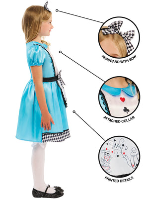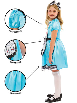 Embark on a magical adventure with the Rubies Alice costume for kids! This enchanting ensemble includes a charming dress with an attached bow and a delightful headband, perfect for bringing the wonder of Wonderland to life. Let your child's imagination soar in this classic and captivating outfit, perfect for Book Day.