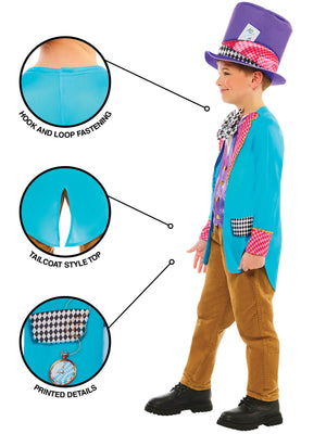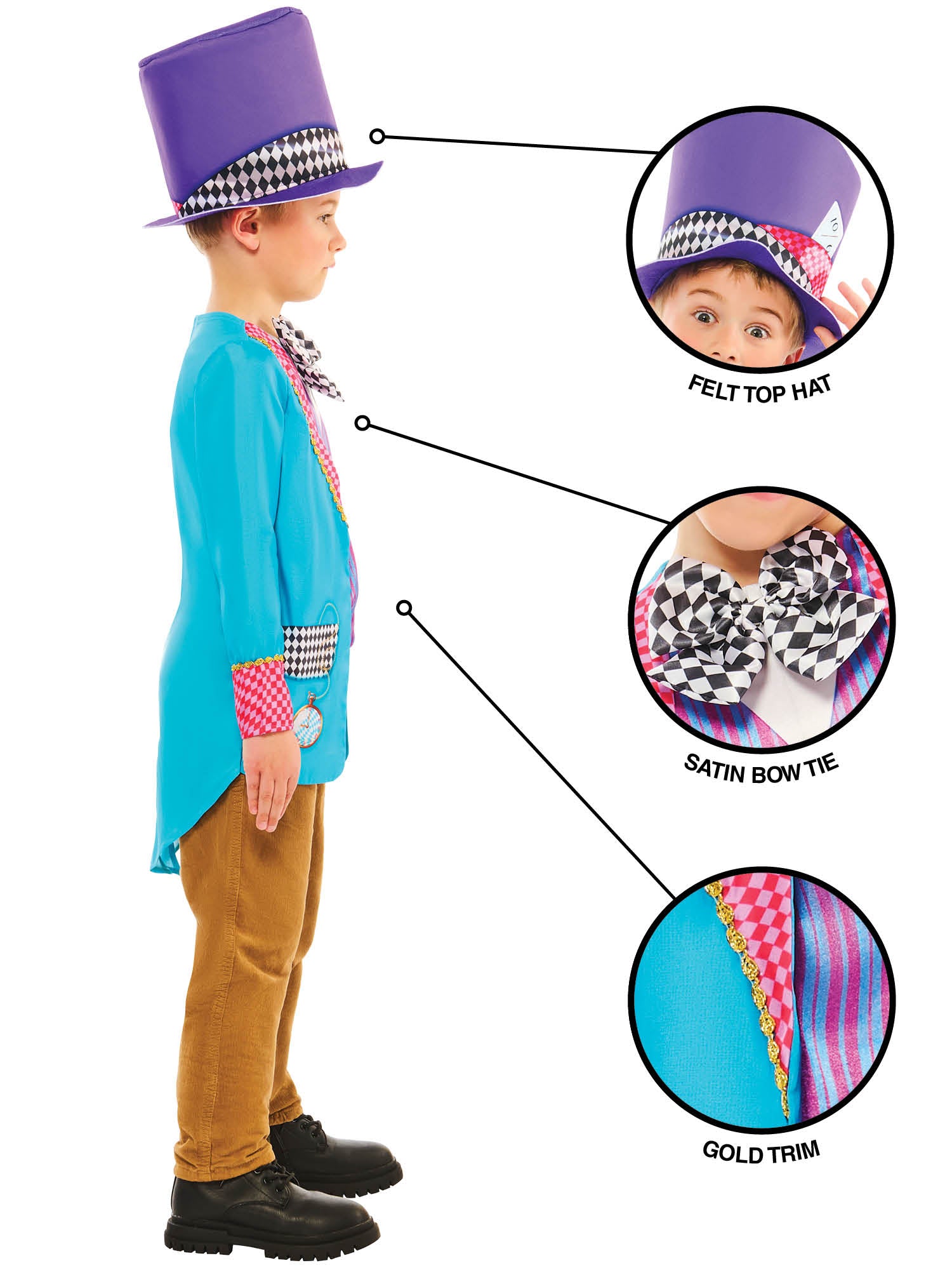 Step into a whimsical wonderland with the Rubies Eccentric Hatter costume for kids! This playful ensemble features a coat-style top and a quirky hat, perfect for channeling the charm of an eccentric hatter. Let your child's imagination run wild in this delightful and fantastical outfit, ideal for Book Day!