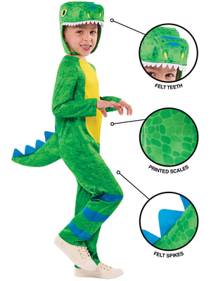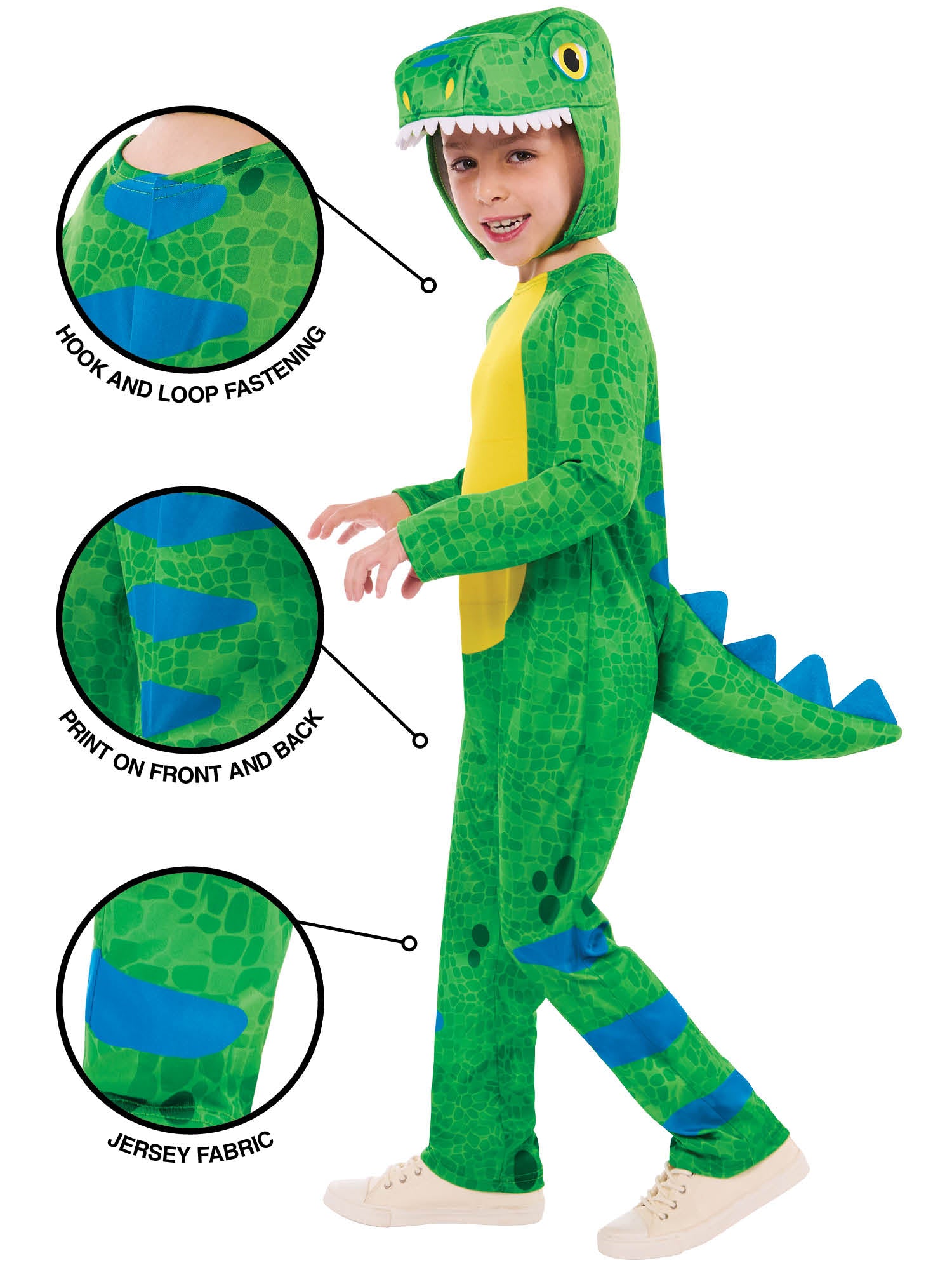 Embark on a prehistoric adventure with the Rubies Dinosaur costume for kids! This thrilling set includes a jumpsuit with a detachable tail and a fierce headpiece, perfect for stomping around in dino-style. Watch your little one transform into a roaring, tail-swishing dinosaur and rule the land of imagination!