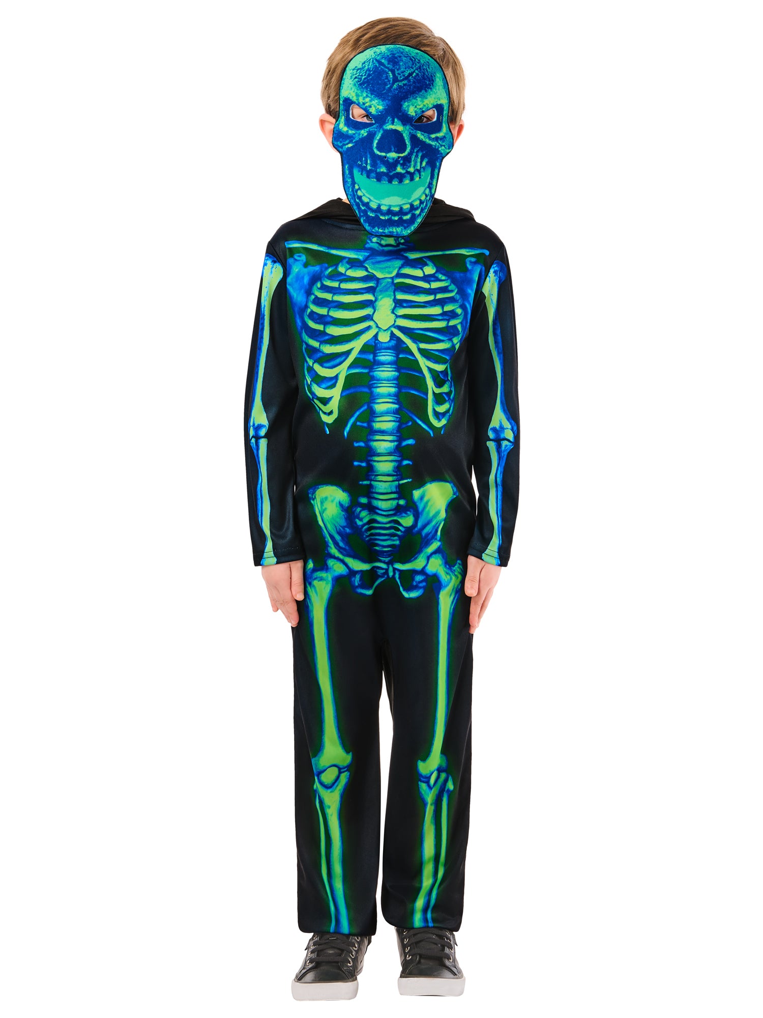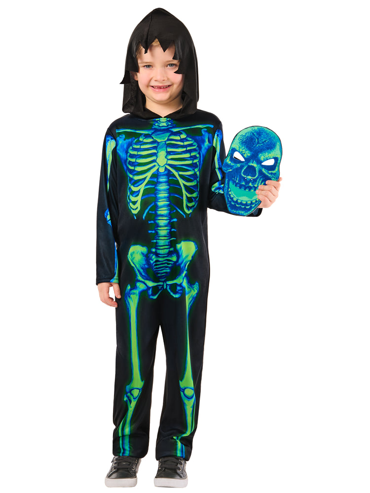 Get ready to light up the night with the Rubies Neon Green Skeleton Costume. This electrifying ensemble will make your little one shine as they embrace the spooky fun of Halloween. The costume features a black jumpsuit adorned with vibrant neon green skeleton bones, creating a striking and attention-grabbing look. Perfect for Halloween parties, costume contests, or a night of door-to-door candy collecting, the Rubies Neon Green Skeleton Costume will make your child the coolest skeleton in town. Watch as they light up the night and bring a vibrant and spooky atmosphere to any Halloween celebration.