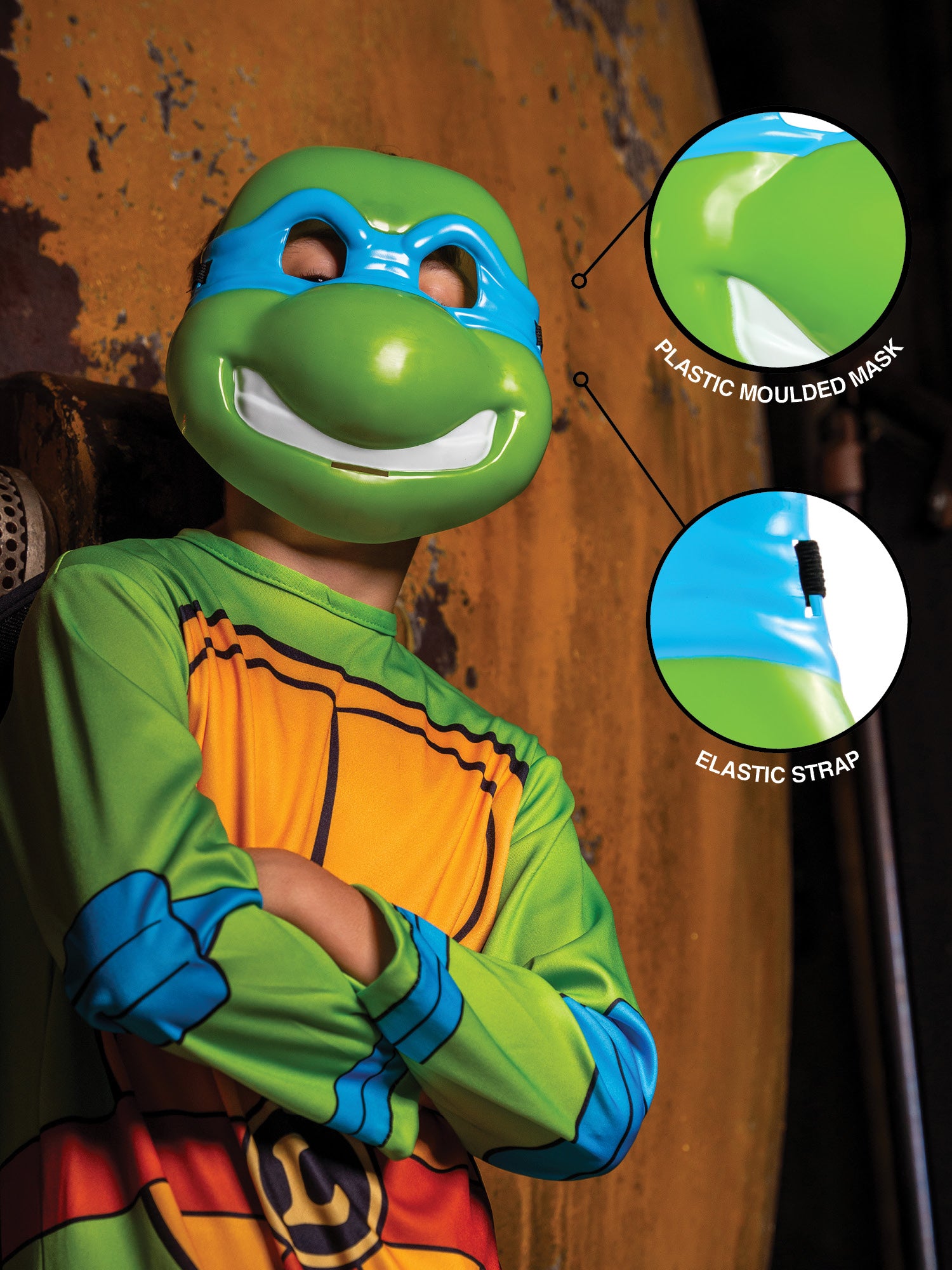 Enhance your child's Leonardo costume with our creatively crafted half mask! Designed to complement their Ninja Turtle attire, this accessory adds an extra touch of authenticity and charm to their heroic ensemble. Get ready to lead the turtle team in style!