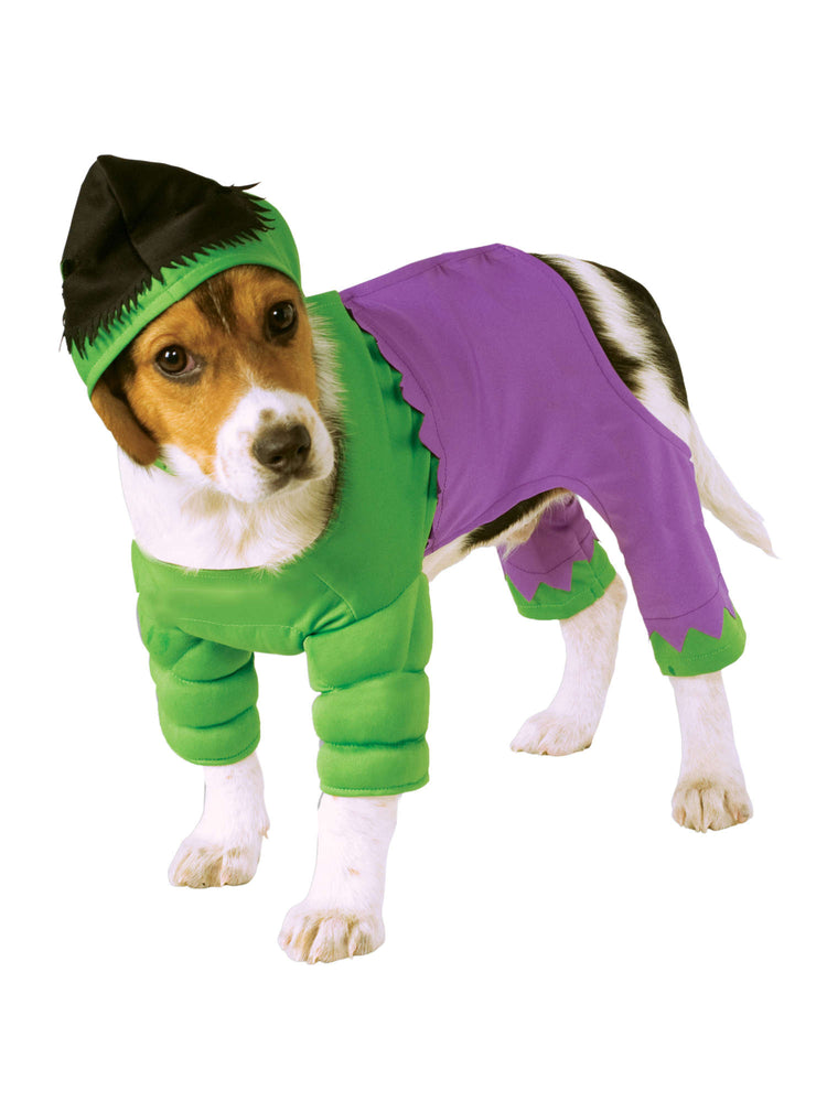 Hulk Smash! He's the green machine, muscle-bound and simply Incredible! After a lab accident involving gamma radiation, alter-ego Bruce banner finds himself turning into a huge green-skinned monster whenever he gets angry. Enter Hulk - one of the most popular Marvel Avengers. Originating from Marvel Comics, the Hulk has smashed his way into the Marvel Cinematic Universe with super strength. Played by Actors Mark Ruffalo, Eric Bana and Edward Norton, Hulk has appeared in many Marvel movies by Disney, including Hulk (2003), The Incredible Hulk (2008), The Avengers (2012), Iron man 3 (2013), Avengers: Age of Ultron (2015), Thor Ragnarok (2017) and Avengers: Infinity War (2018). Includes jumpsuit with front legs, fibre filled for muscle look, back legs with bottom cut out and headpiece with attached fabric hair.