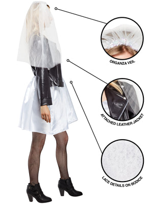 Do you take Chucky to be your one and only? You can, once you get dressed up as his bride, Tiffany! Containing a dress with attached jacket, veil and glovelets, you’ll be transformed into the cursed doll from the iconic film franchise in moments. Combine with our Chucky costume to make the best couples costume of the year for Halloween!