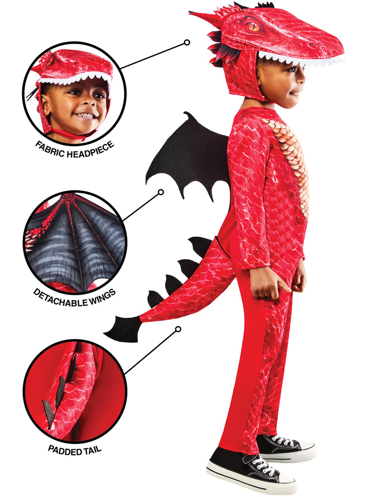 Soar into legend with this majestic Red Dragon costume! Breathe fire into your next costume party as you embody one of fantasy's most iconic creatures. With impressive wings and a fierce presence, you'll command attention wherever you go. Perfect for fantasy enthusiasts, cosplayers, and anyone looking to unleash their inner beast!