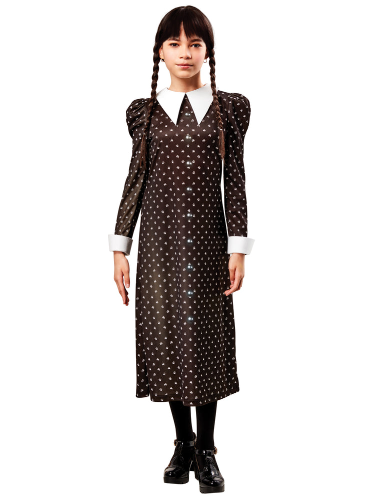 Step into the spooky world of Wednesday Addams with this fantastic costume box set inspired by the hit Netflix series "Wednesday". This box set includes a Wednesday dress and wig, making it the perfect choice for young fans who want to dress up as their favorite character.