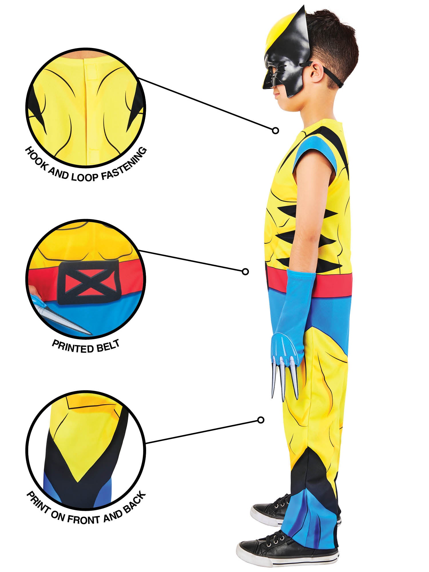 Unleash the untamed mutant within with the Rubies Wolverine Child Costume. Designed for aspiring young superheroes, this costume set includes a high-quality jumpsuit, gloves with claws, and a half mask to transform your child into the iconic X-Men character, Wolverine.