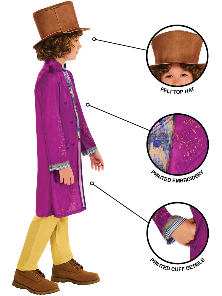 Step into the whimsical world of Willy Wonka with Rubies Kids' Costume! Watch your little one turn into the iconic chocolatier with a coat top, printed waistcoat, funky trousers, and a quirky hat. Perfect for imaginative play, themed parties, or Halloween. Officially licensed by Rubies - let the chocolatey adventures begin!