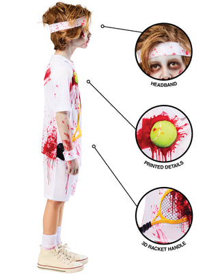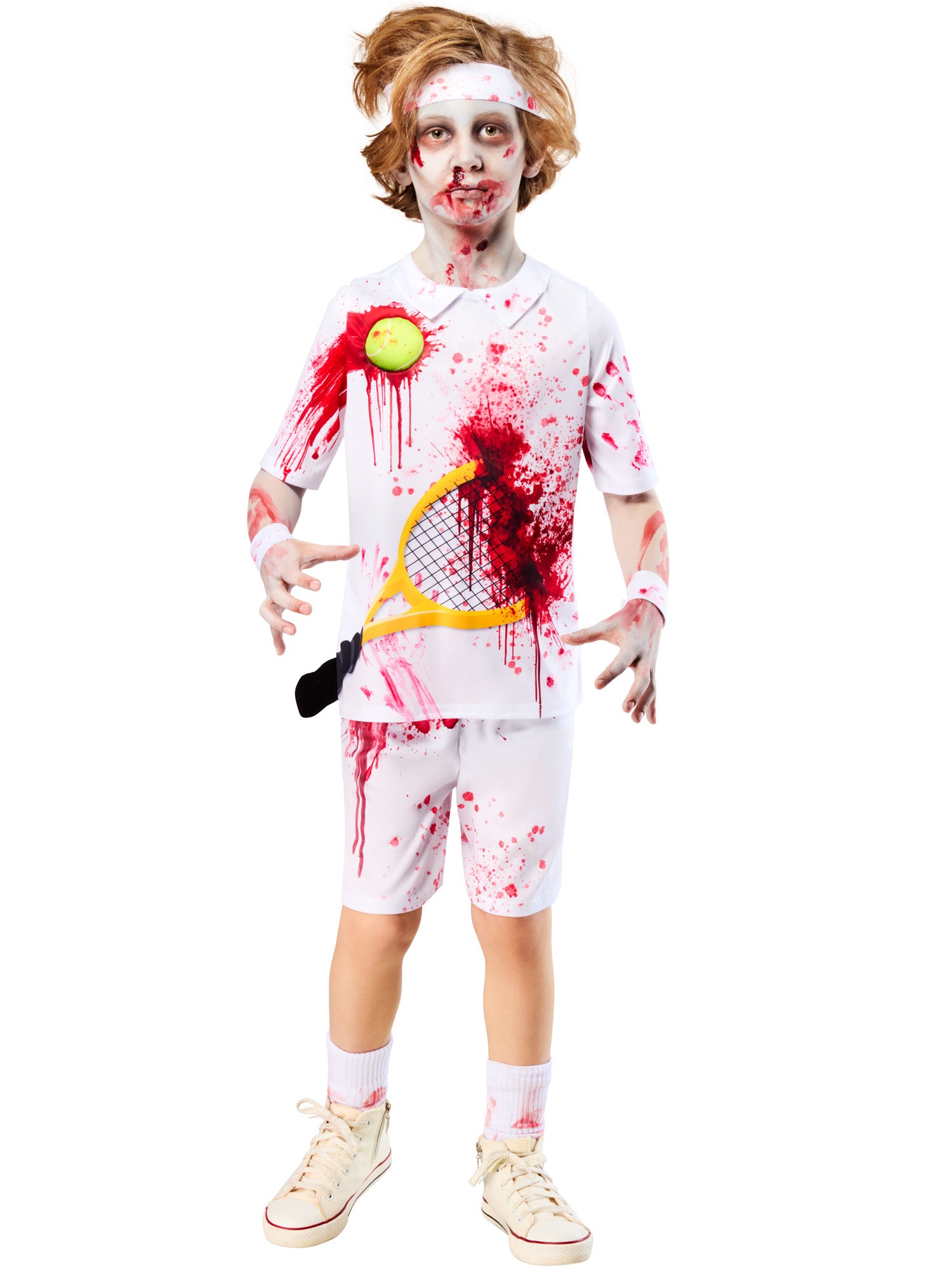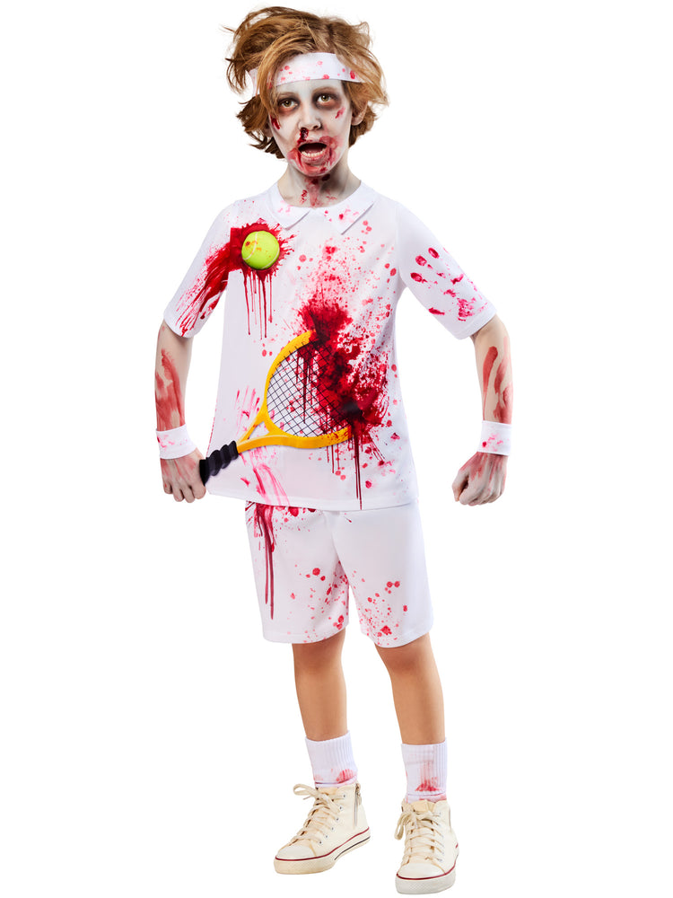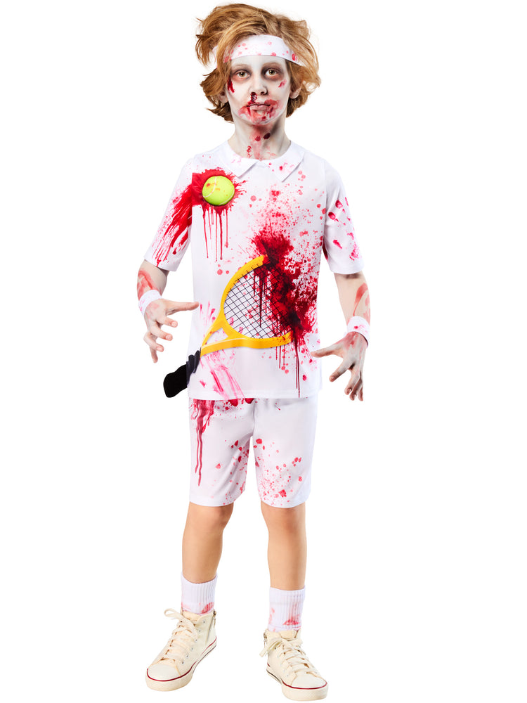 Serve up some terror on the tennis court with the Zombie Rotter Federer costume! Ace your Halloween look as the undead version of the tennis legend. Perfect for sports fans with a dark sense of humor or costume party-goers looking to make a grand slam impression. Get ready to dominate the zombie open in this wickedly fun ensemble!